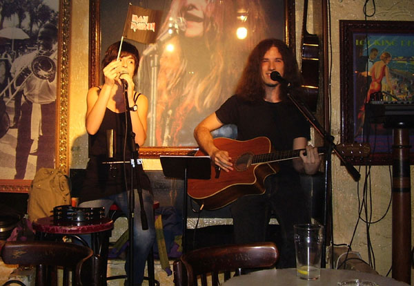 Acústico de Inés y Richi, en el que Richi perdió la guitarra por el camino, y gracias a Chema y a su acústica pudimos seguir con el concierto...