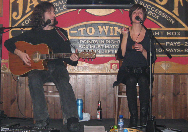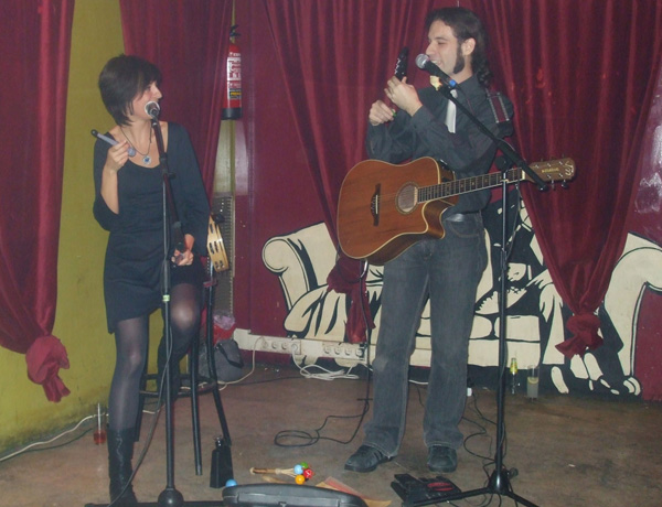 Acústico de Inés y Richi (ya con la guitarra arreglada y acatarrado, sobreviviendo a base de zumo de limón con miel...).